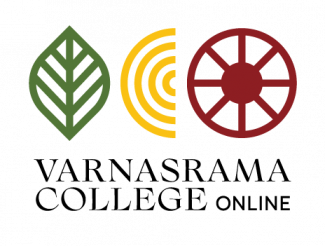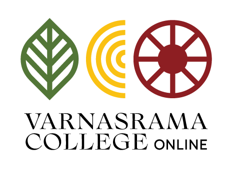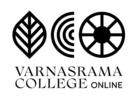 The idea of the logo is based on three symbols, which represent a connection with Varnasrama Dharma. One letter of the abbreviation VCO is hidden in each symbol, which is supported by a color so that the letter and symbol are clearly identifiable.
